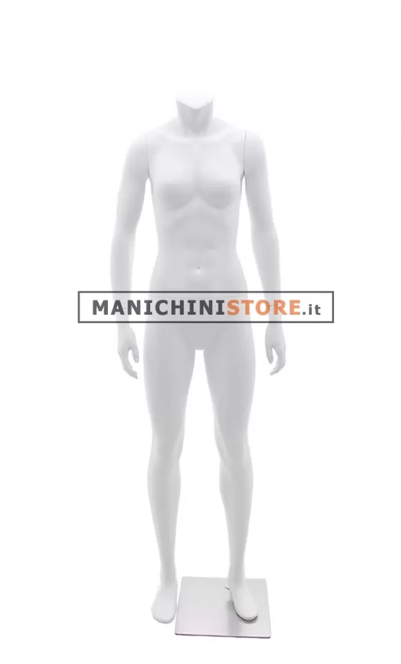 Favoloso manichino donna sportivo senza testa realizzato in vetroresina e verniciato in bianco opaco.
