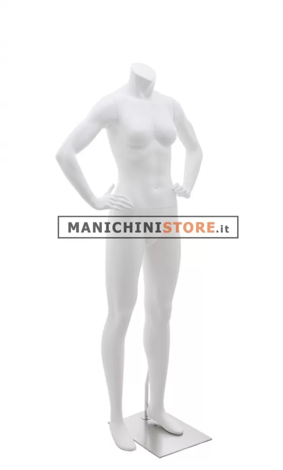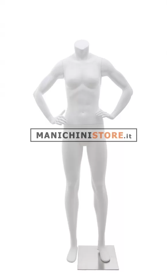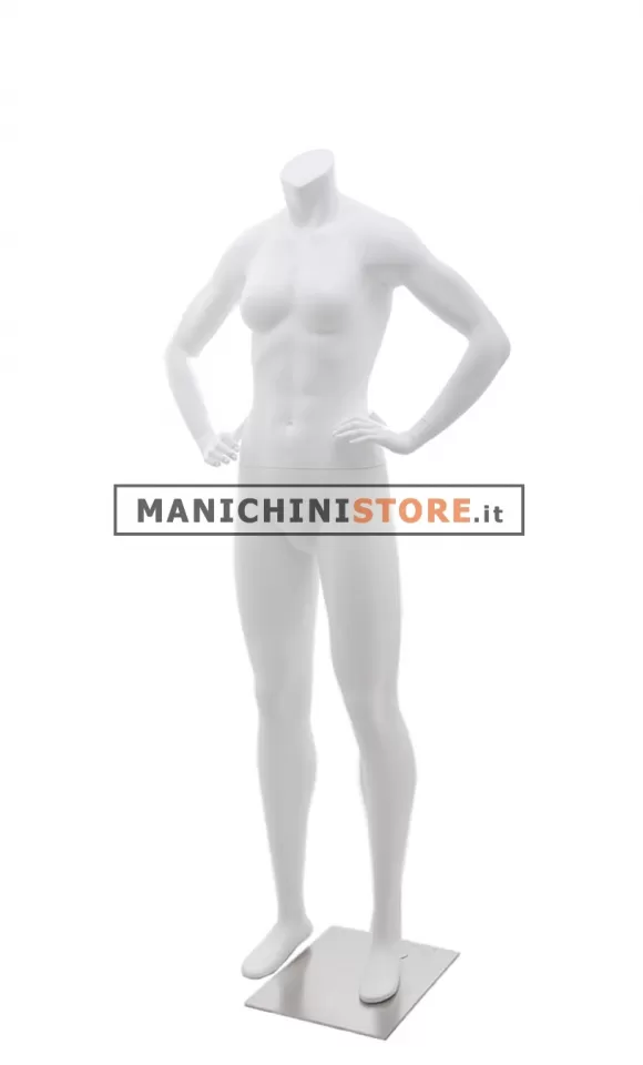 Favoloso manichino donna sportivo senza testa realizzato in vetroresina e verniciato in bianco opaco.