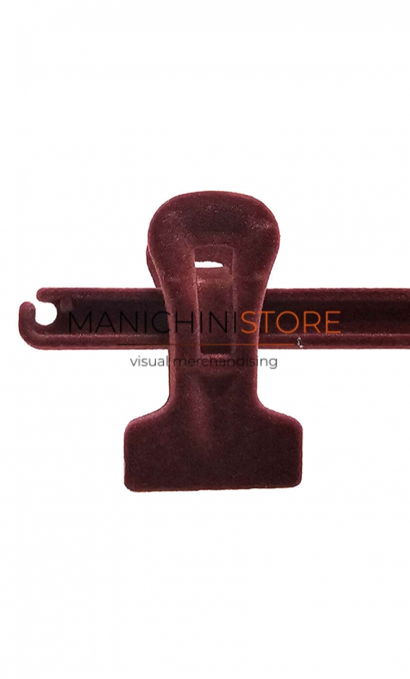 Pratica ed economica gruccia appendiabito pinza per gonna e pantalone di fabbricazione Made in Italy rivestita in velluto bordeaux.