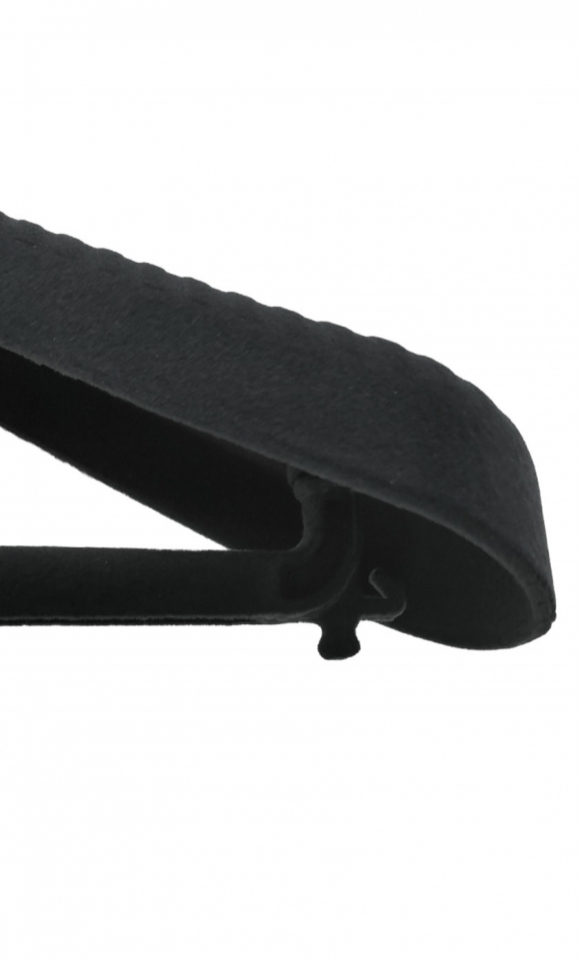 Funzionale ed economica gruccia capospalla con portapantalone di fabbricazione Made in Italy realizzata in velluto nero.