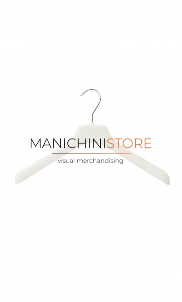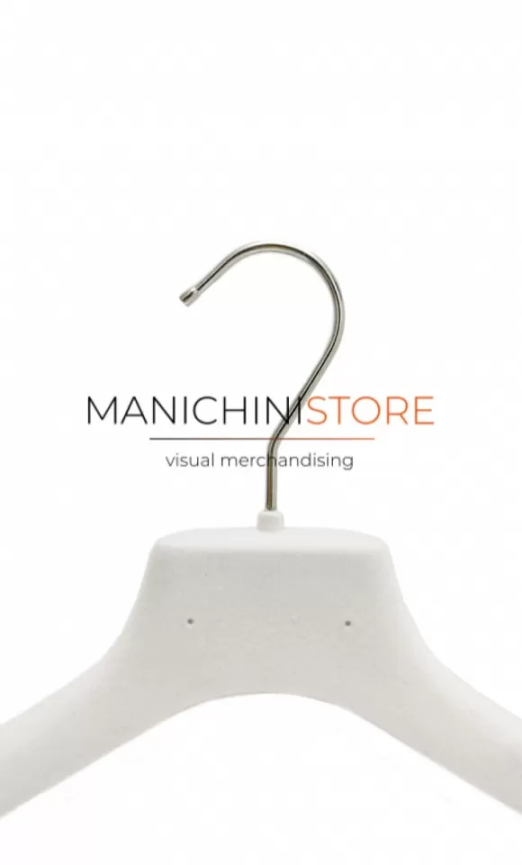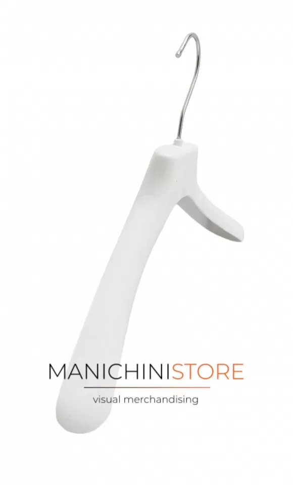 Pratica ed economica gruccia capospalla di fabbricazione Made in Italy realizzata in plastica e vellutata in color bianco.