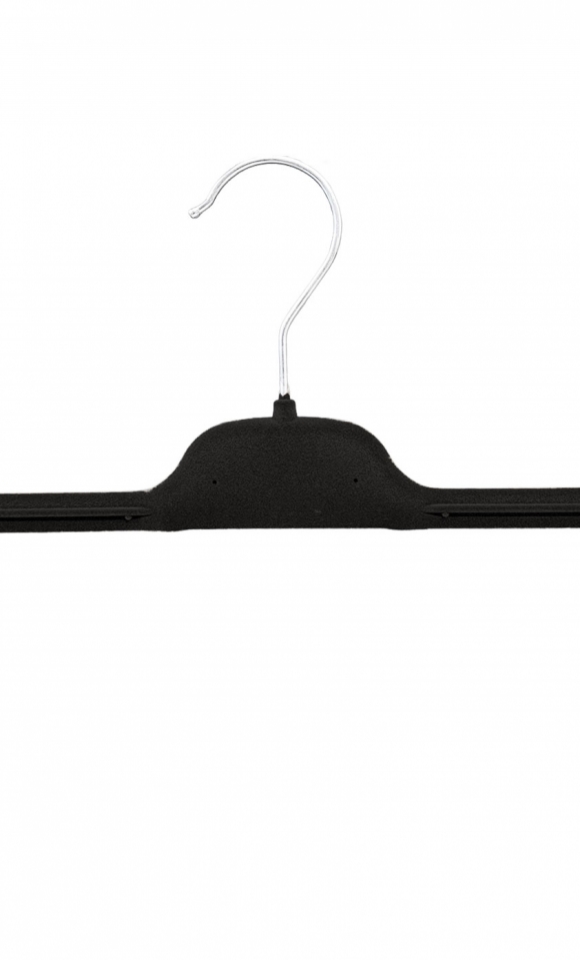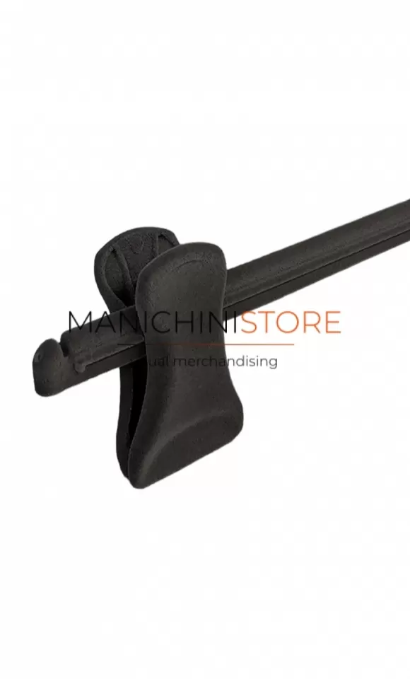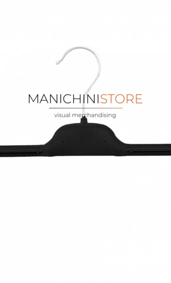 Funzionale gruccia appendiabito pinza per gonna e pantalone di fabbricazione Made in Italy rivestita in velluto nero.