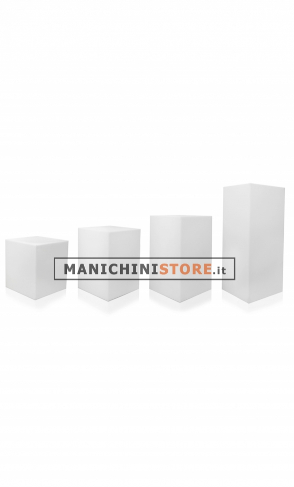 Funzionale cubo in plastica, con possibilità d'illuminazione, di fabbricazione Made in Italy ideale per allestire e arredare i vostri negozi con gusto e originalità; in quanto può essere facilmente trasformato da seduta a tavolo modulare, da espositore a lampada, a semplice decorazione per i vostri ambienti.