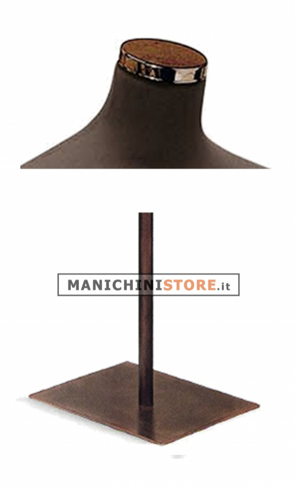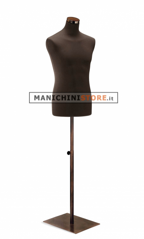 Il busto è dotato di una bellissima base quadra in metallo verniciato Vintage del diametro di 35 cm con piantana regolabile in altezza da 149 a 174 cm; inoltre è completo di terminale in metallo Vintage ed è rivestito con una elegante maglina in cotone elasticizzato Testa di Moro lavabile in lavatrice.