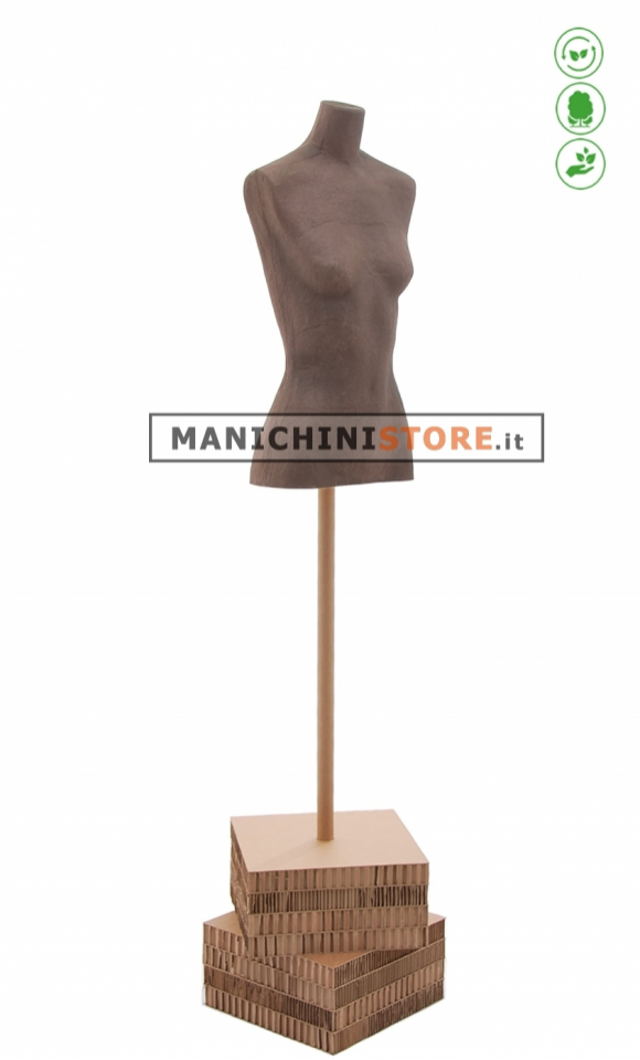 Manichini Store rende disponibile il busto teenager color cuoio con doppia base quadrata marrone. Il prodotto qui proposto è realizzato con l’utilizzo della cartapesta, la quale viene riciclata, ed è fornito di un innovativo elemento d’appoggio in cartone naturale.
