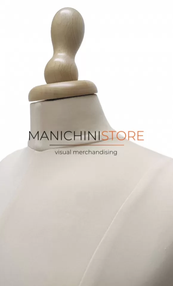 Elegante busto sartoriale donna in poliuretano spillabile e rivestito con una maglina color avorio,