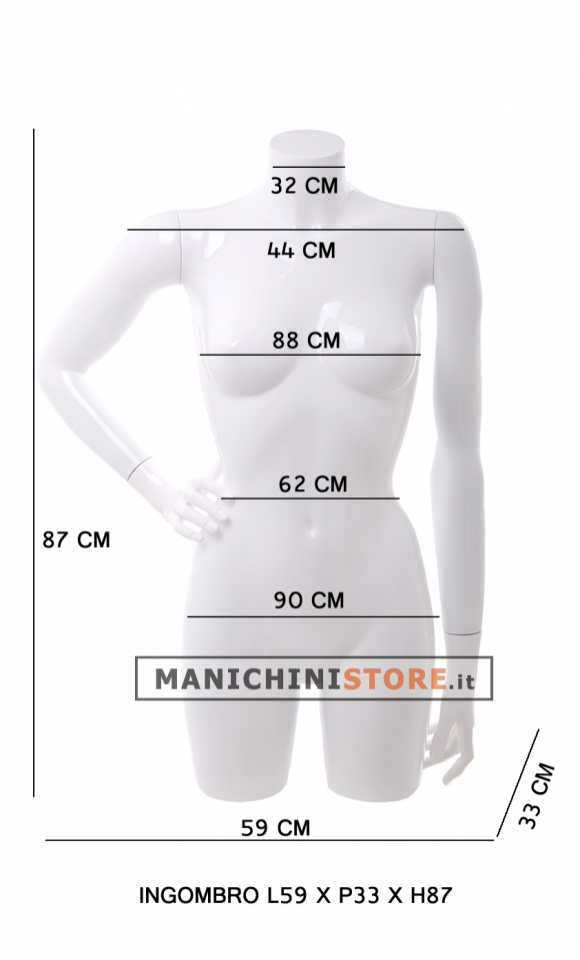 Il busto donna finito di braccia dalla posa accattivante, regala una splendida vestibilità rispondendo a tutte le esigenze di stile del vostro negozio.