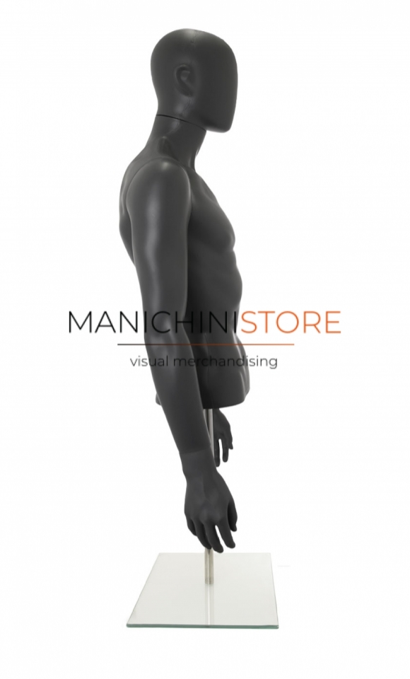 Bellissimo busto torso uomo da banco completo di braccia, realizzato in soffiaggio plastico precolorato grigio antracite opaco.