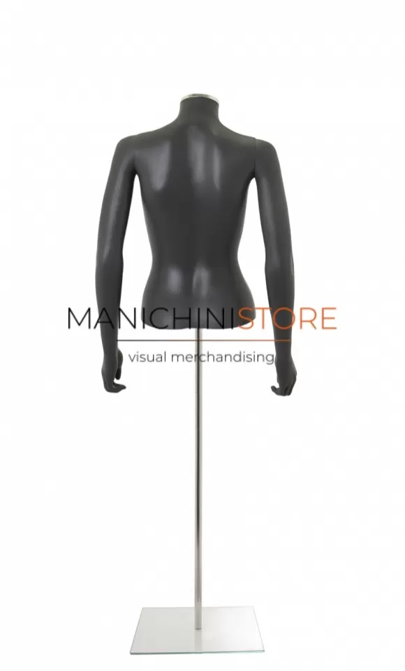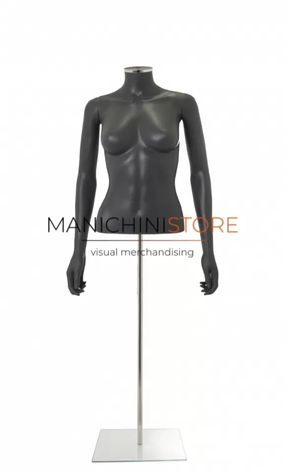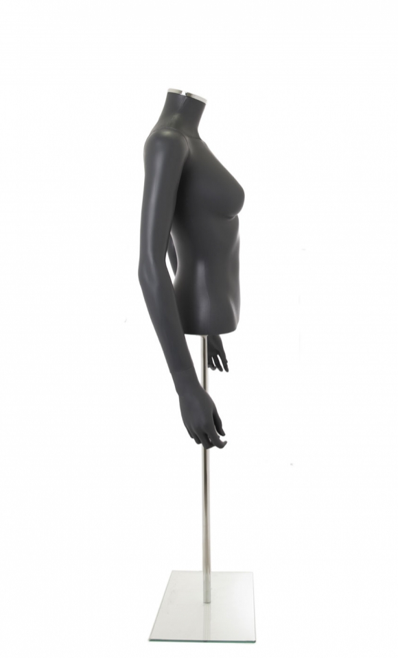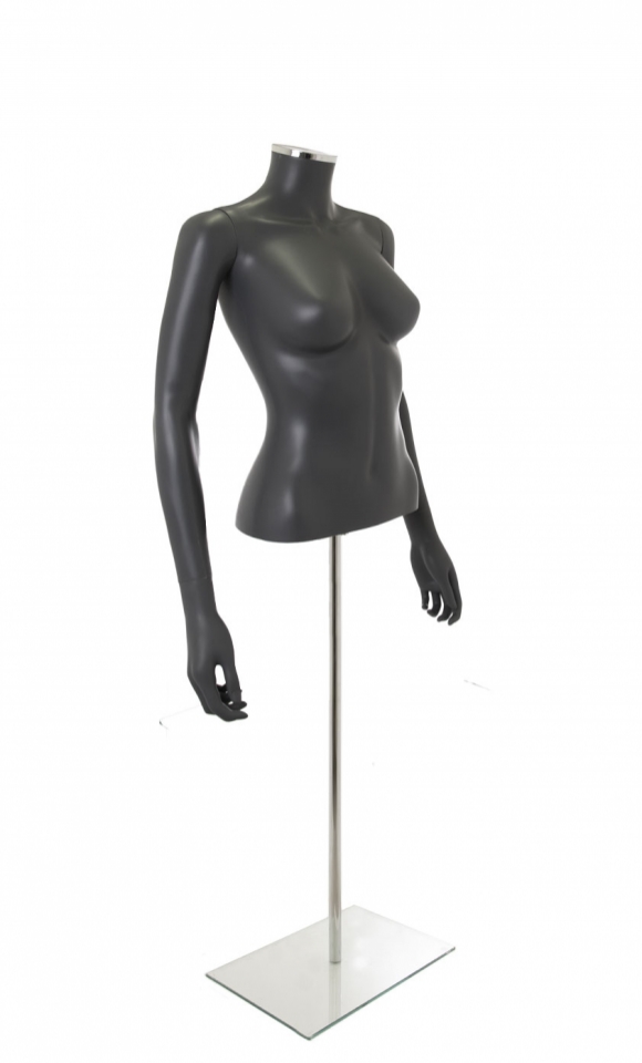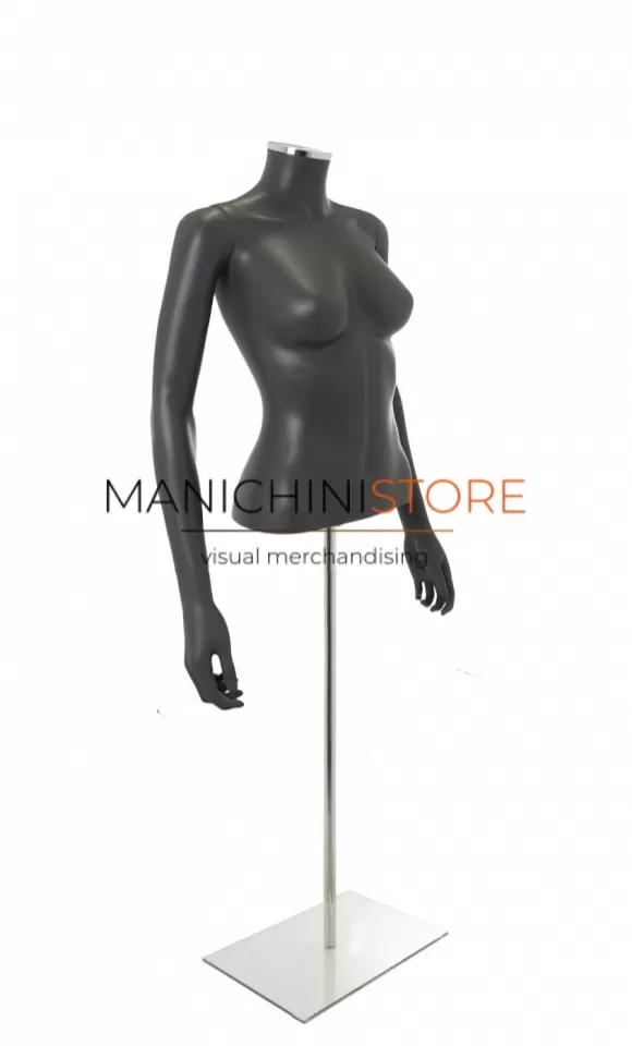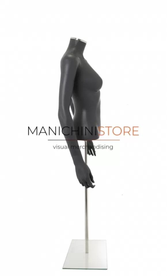 Bellissimo busto torso donna completo di braccia, realizzato in soffiaggio plastico precolorato grigio antracite opaco.