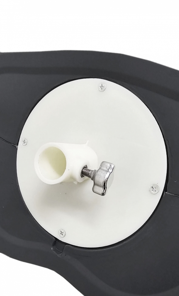 Il busto è fornito di una base rettangolare in vetro 43x30 cm con asta fissa da 120 cm e di un terminale effetto cromato.