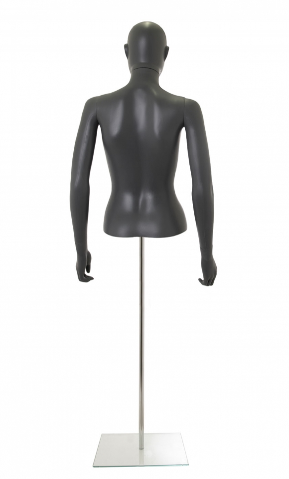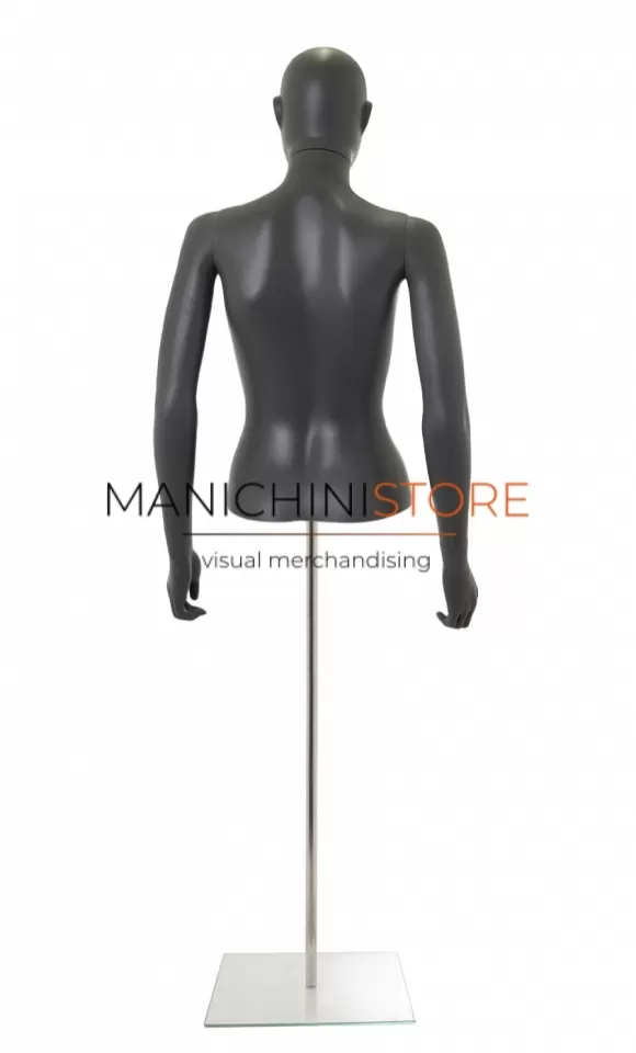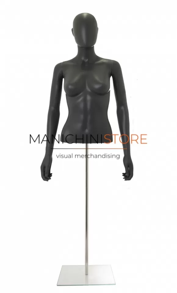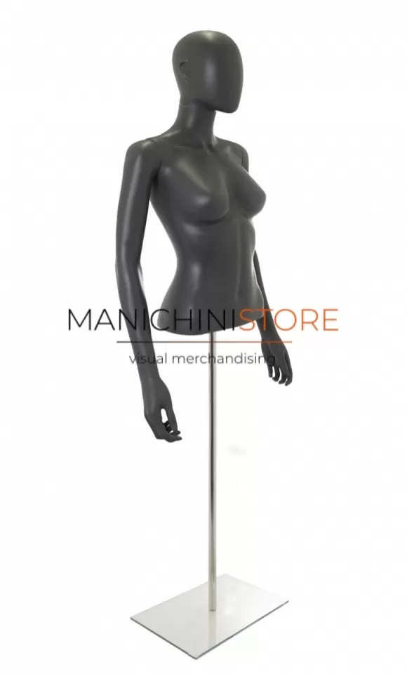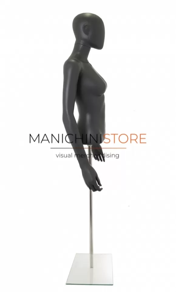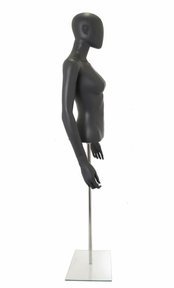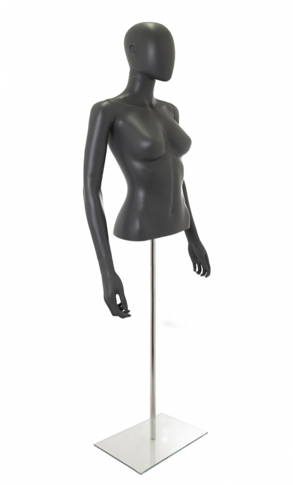 Bellissimo busto torso donna da banco completo di braccia, realizzato in soffiaggio plastico precolorato grigio antracite opaco.