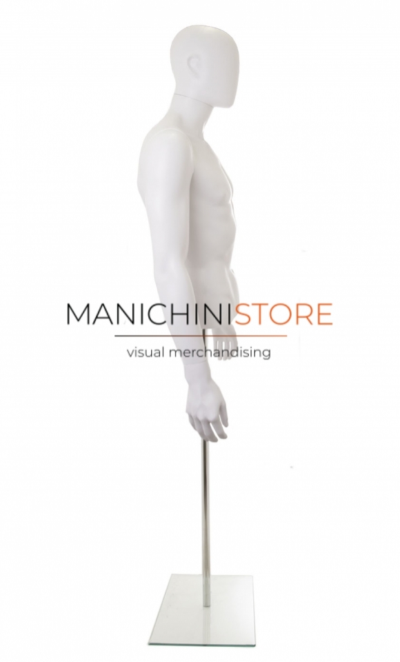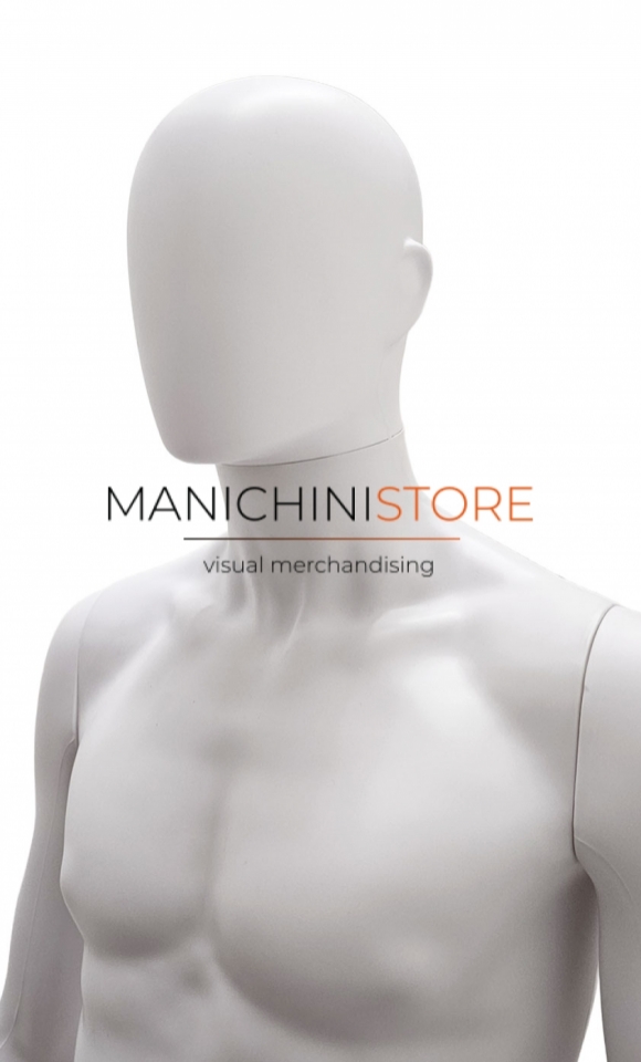 Bellissimo busto torso uomo da banco completo di braccia, realizzato in soffiaggio plastico precolorato bianco opaco.