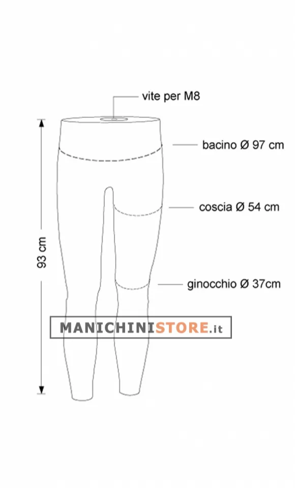 Le gambe da uomo vengono fornite di base di appoggio in acciaio verniciato nero 28 x 28 cm con piantana regolabile in altezza.