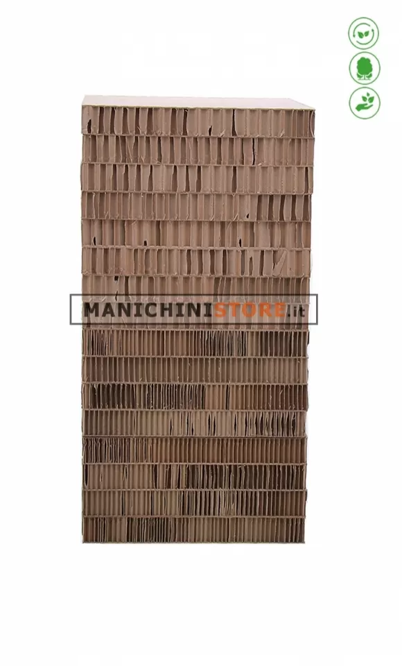 Accattivante cubo espositivo di produzione Made in Italy, realizzato in cartone riciclato di misura 33 x 33 x 64 h cm.