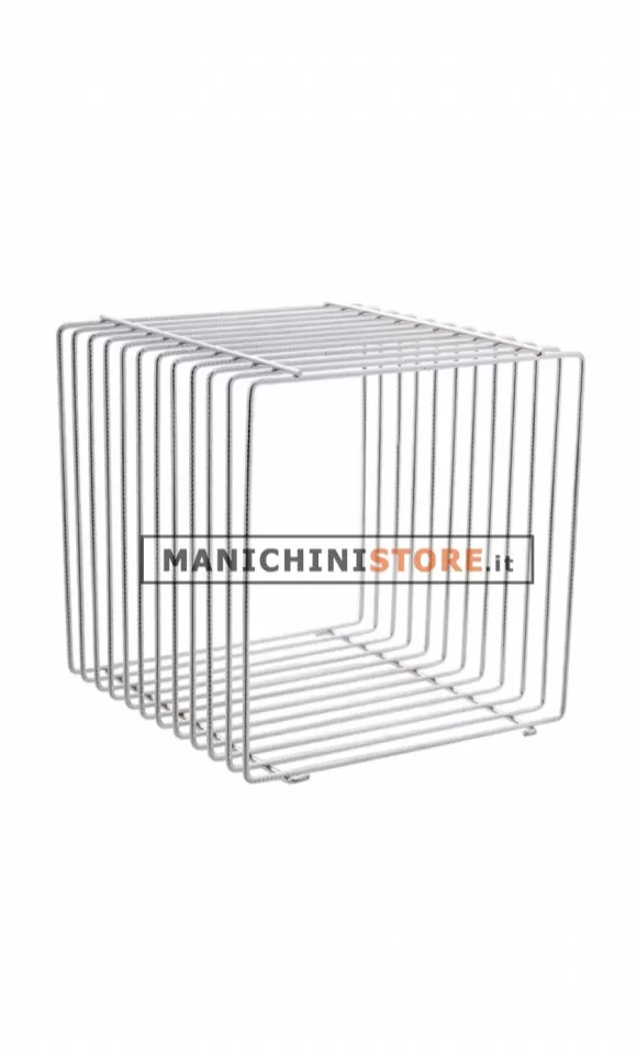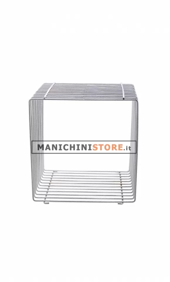 Funzionale cubo in filo ferro cromato di fabbricazione Made in Italy.
