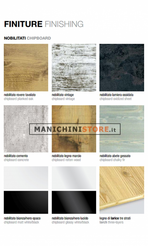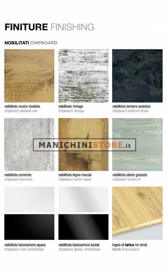 E' possibile scegliere il tipo di colorazione del top e del fondo in nobilitato (vedi immagine con finiture).