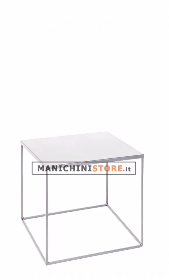 Pratico e funzionale cubo/tavolo in filo ferro verniciato in color bianco di fabbricazione Made in Italy.