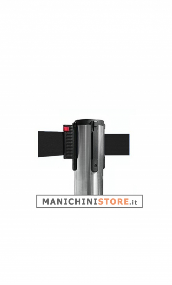 La base piatta anticiampo, calpestatile con un diametro di 37 cm e uno spessore di 6/7mm, garantisce maggiore stabilità. La colonnina è alta 98 cm, e pesa 8 kg. Il tubo ha uno spessore di 12/15decimi. Il nastro, con lunghezza di 3 metri è dotato di clip di sicurezza, disponibile nei colori rosso e nero su richiesta.
