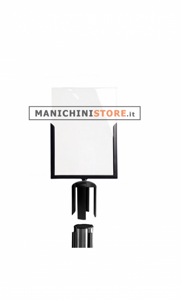 Composto da sostegno in ABS nero antigraffio e tasca in plexiglass altamente trasparente. Per comunicazioni intercambiabili in carta o cartoncino.