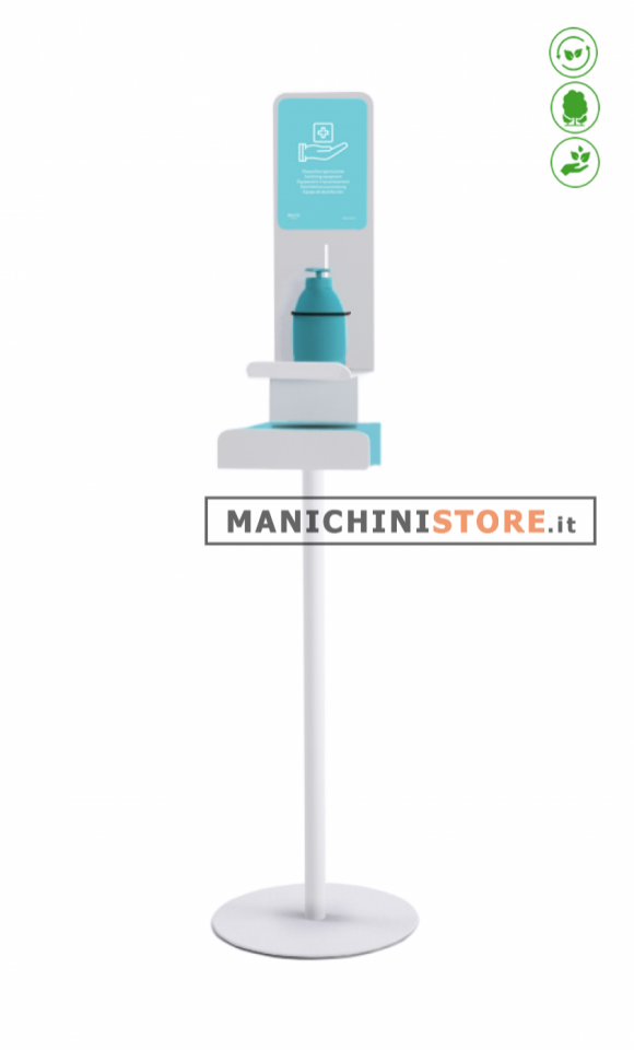 Colonna in acciaio verniciato bianco porta flaconi di gel igienizzante e scatole di guanti (sapone liquido e guanti monouso non inclusi).