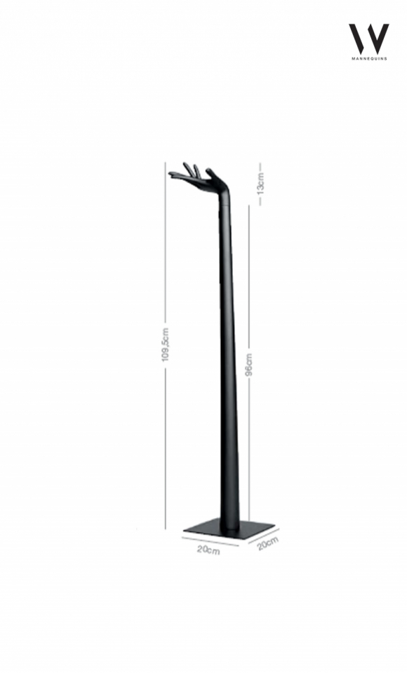 La mano espositiva misura: Altezza complessiva 109,5 cm, larghezza 20 cm, profondità 20 cm, altezza solo braccio 96 cm, altezza solo mano 13 cm.
