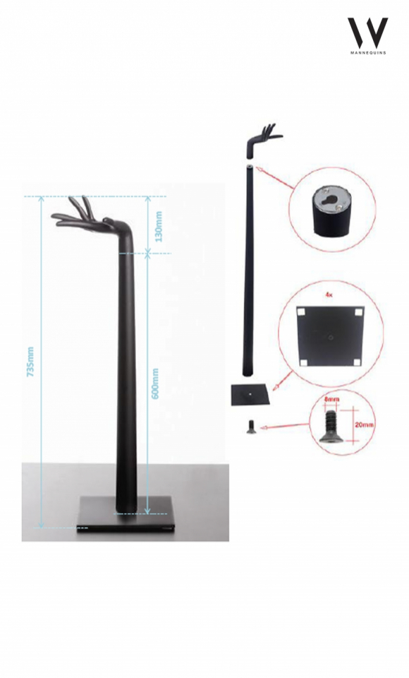 La mano misura: Altezza complessiva 73,5 cm, profondità18 cm, larghezza 18 cm, altezza braccio 60 cm, altezza solo mano 13 cm.