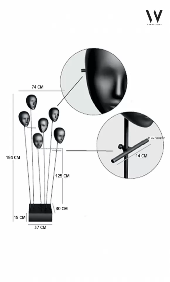 Ottime per esporre cappelli, le teste sono dotate di magneti laterali per potervi permettere anche l'esposizione di occhiali da vista e occhiali da sole.