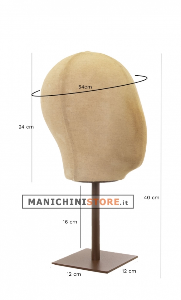 Particolarmente maneggevole, la testa è ottimale per l'esposizione di cappelli, parrucche, e fasce ma anche di occhiali, grazie all'aiuto di piccoli spilli (vedi immagini di dettaglio).