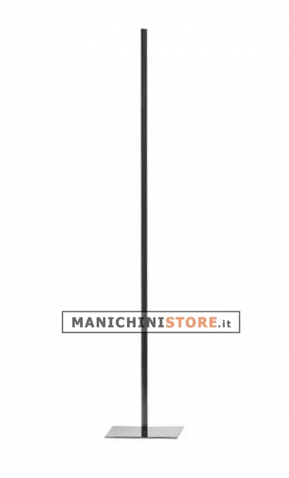 Asta di supporto per manichini fabbricata in acciaio di colore nero lucido e dotata di base quadrata.