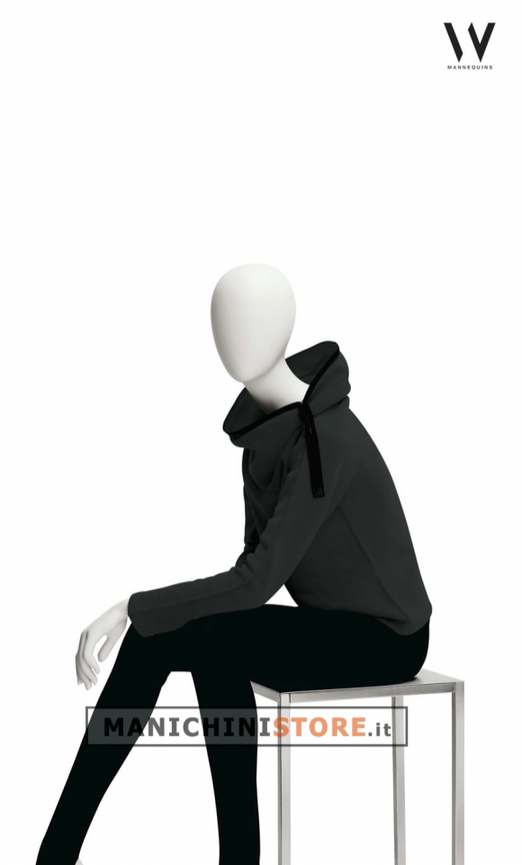 Straordinario manichino donna dalla testa a uovo realizzato in vetroresina dalla squisita raffinatezza e dalla posa aggraziata ed elegante.