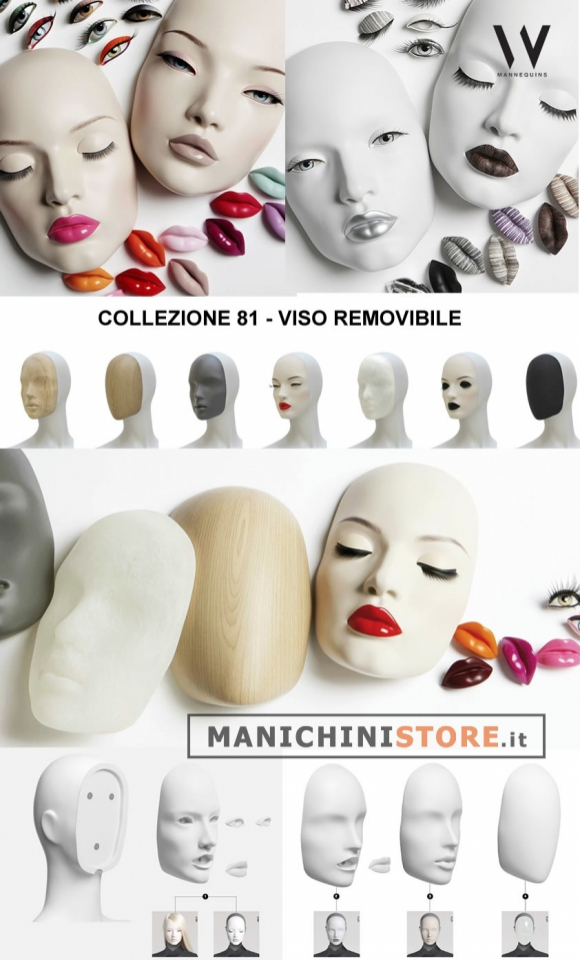 COLLEZIONE 81 - VOLTO REMOVIBILE nella quale potrete divertirvi a variare il vostro manichino con visi a uovo, visi astratti e visi realistici con trucco intercambiabile.