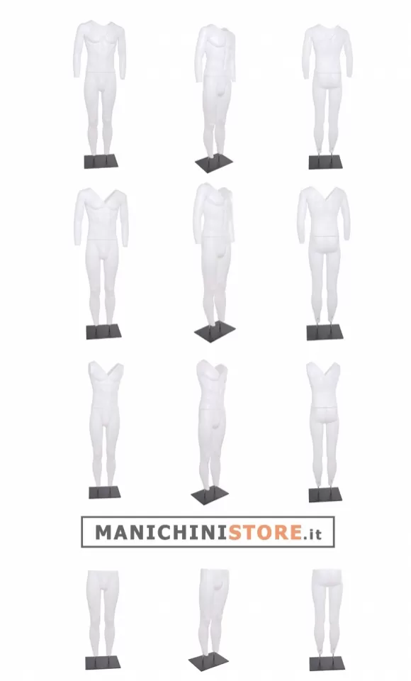Pratico manichino uomo modulare idoneo per foto cataloghi e E-commerce, realizzato in vetroresina verniciato.