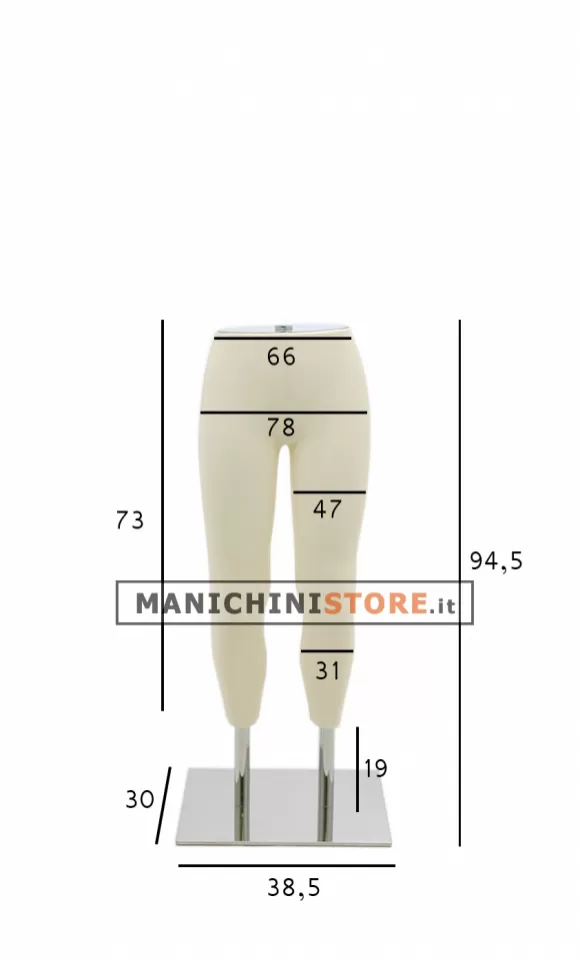 Le gambe hanno un'altezza complessiva di 94,5 cm; solo le gambe misurano 73 cm.