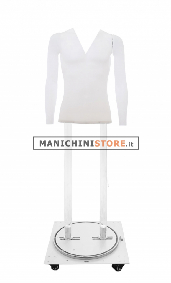 Pratico busto uomo e-commerce di fabbricazione Made in Italy realizzato in soffiaggio plastico trasparente opale ideale per cataloghi, foto di campionario e siti e-commerce.