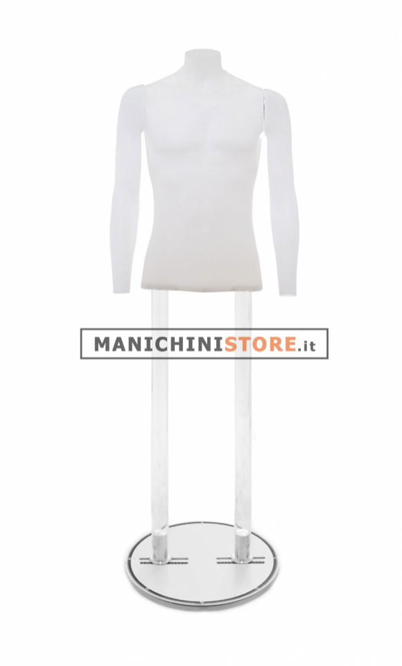 Pratico busto uomo e-commerce di fabbricazione Made in Italy realizzato in soffiaggio plastico trasparente opale ideale per cataloghi, foto di campionario e siti e-commerce.