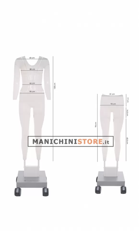 Il manichino viene accessoriato di comoda base d'appoggio con ruote.