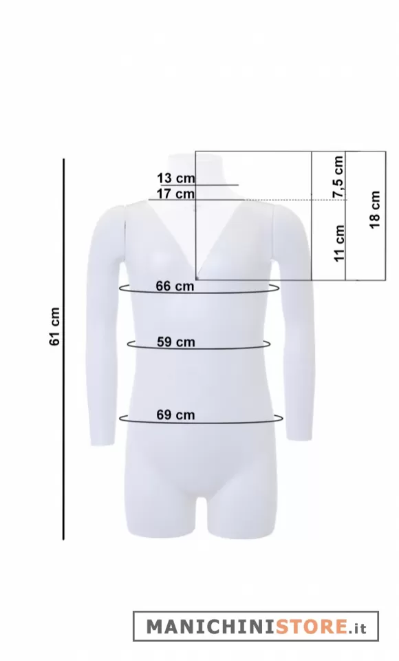 Realizzato in soffiaggio plastico, il manichino interamente made in Italy è accessoriato con 2 tagli collo che vi permetteranno di fotografare qualsiasi capo di abbigliamento.