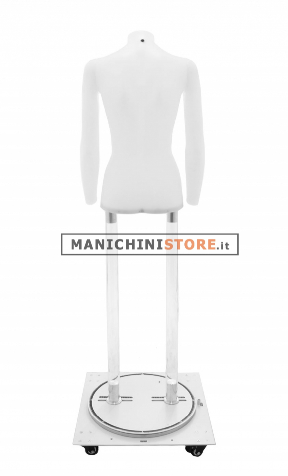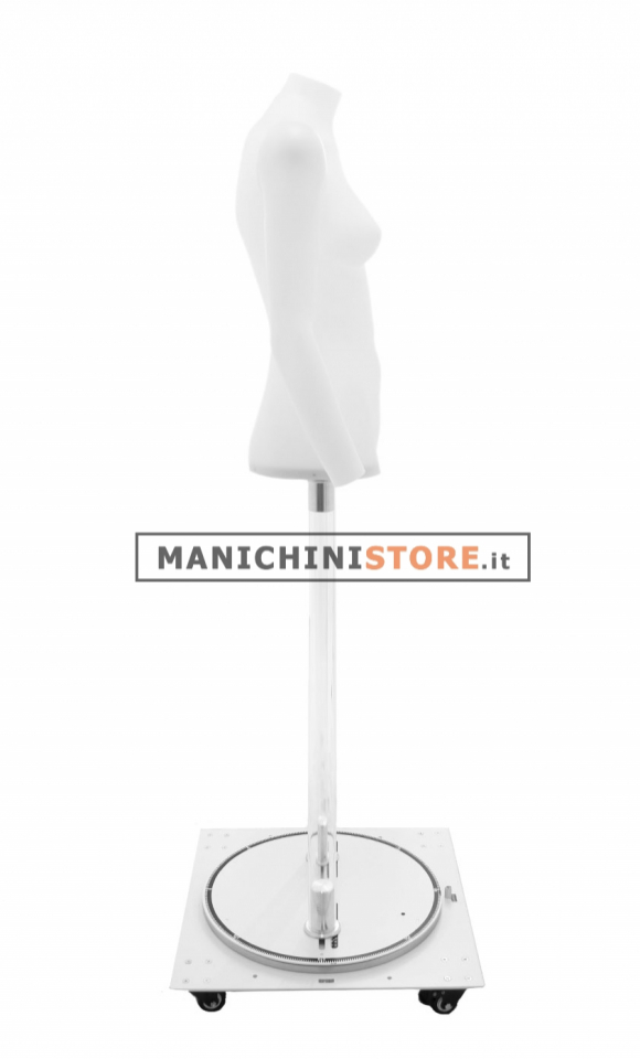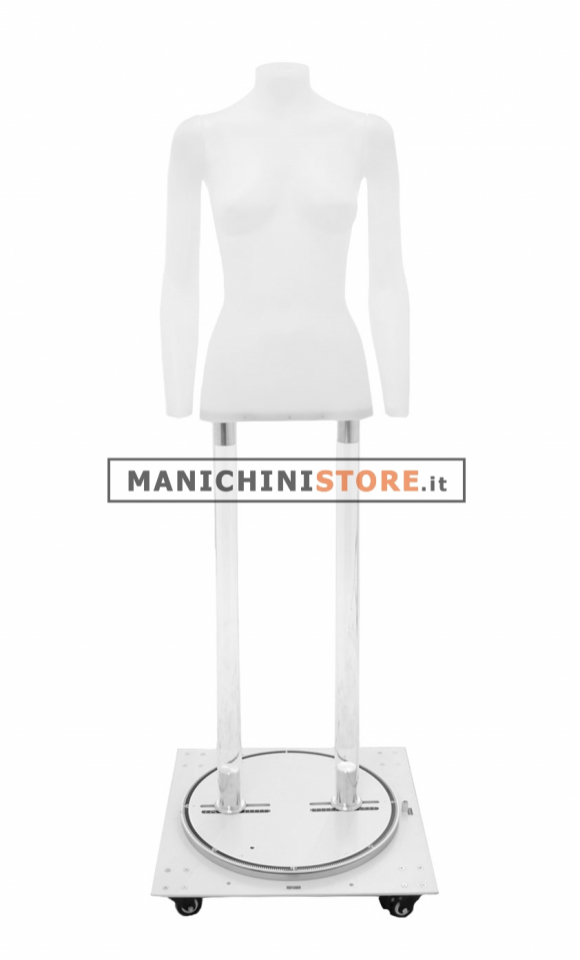 Pratico busto donna e-commerce di fabbricazione Made in Italy realizzato in soffiaggio plastico trasparente opale idoneo per foto cataloghi.