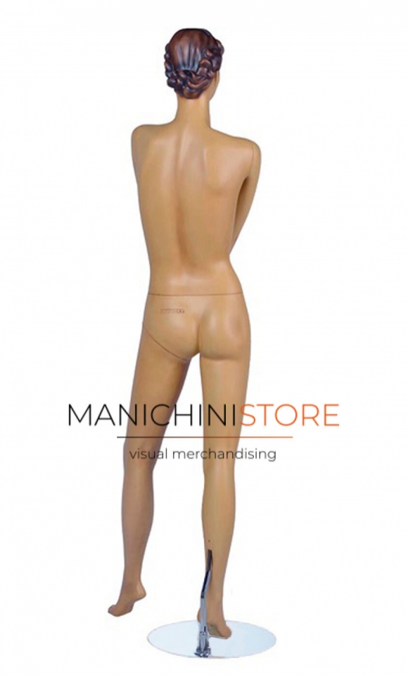 Il manichino è dotato di una base tonda da 40 cm in vetro temperato con attacco al polpaccio per consentire l'esposizione delle calzature.