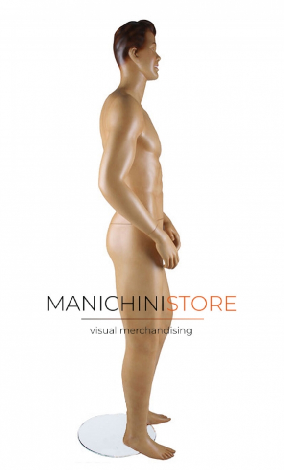 Il manichino è dotato di una base tonda da 40 cm in vetro temperato con attacco al polpaccio per consentire l'esposizione delle calzature.