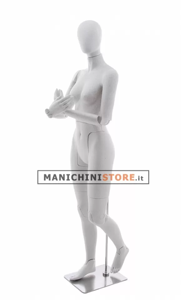 Praticissimo manichino donna super snodato di fabbricazione Made in Italy realizzato in polipropilene espanso, un materiale similare al polistirolo ma decisamente più resistente.