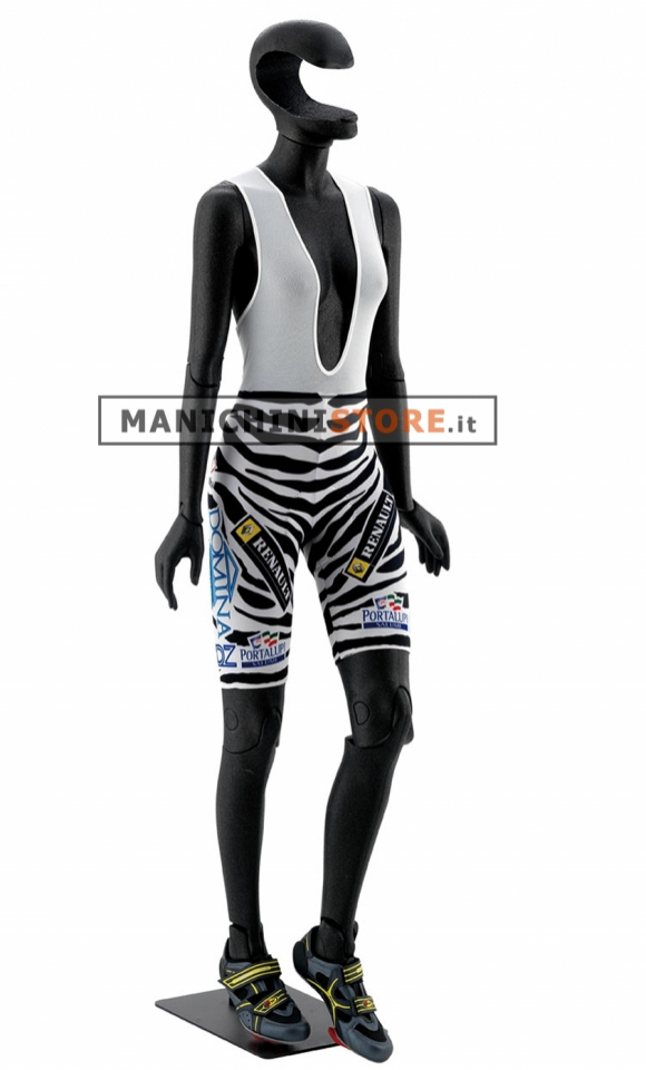 Manichino donna super snodato di fabbricazione Made in Italy realizzato in polipropilene espanso, un materiale simile al polistirolo ma decisamente più resistente.