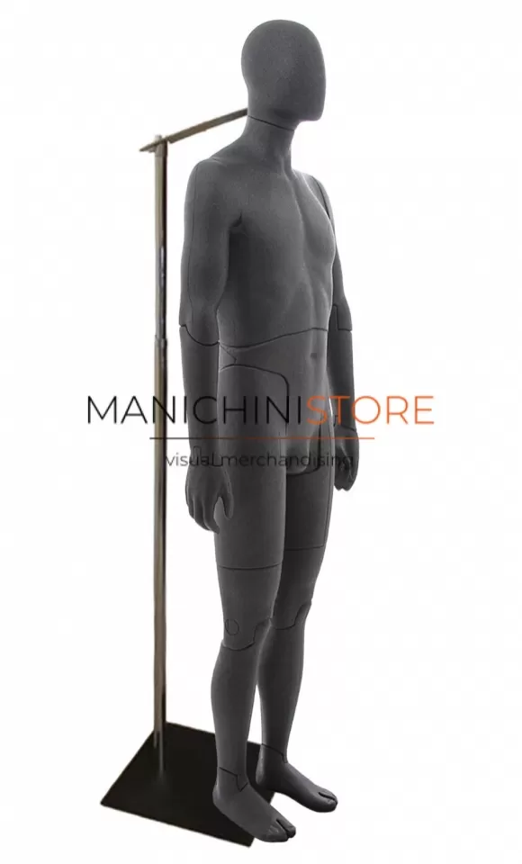 Funzionale manichino uomo super snodato di fabbricazione Made in Italy realizzato in polipropilene espanso, un materiale similare al polistirolo ma decisamente più resistente.