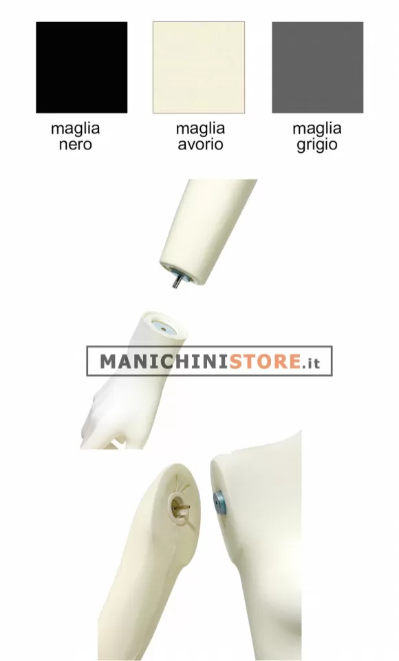 Allo stesso prezzo è possibile acquistare il manichino anche con la maglia di colore avorio o colore grigio.