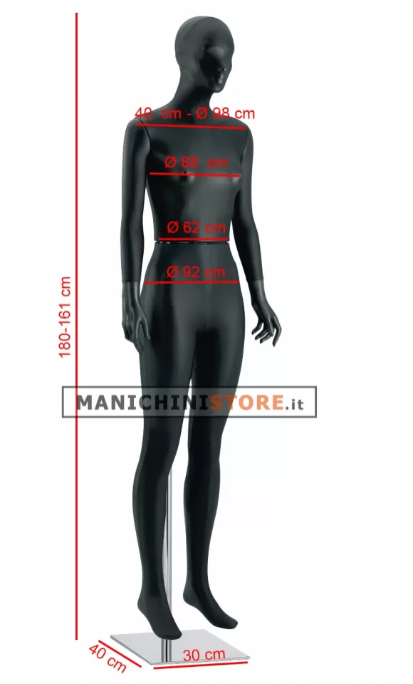 Il manichino donna è caratterizzato dall'ottima vestibilità e dall'estrema leggerezza. Le mani non sono spillabili poichè realizzate in plastica.