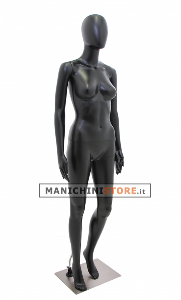 Proposto in pronta consegna, quello qui proposto è il manichino da donna nero opaco Ecoplastic 7, con braccia lungo il corpo. Dotato di una pratica base quadrata in metallo, dalle dimensioni 30 x 40 cm, tramite il suo attacco al polpaccio vi permetterà di esporre calzature con un tacco massimo di 3 cm.