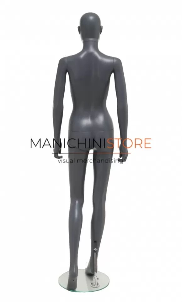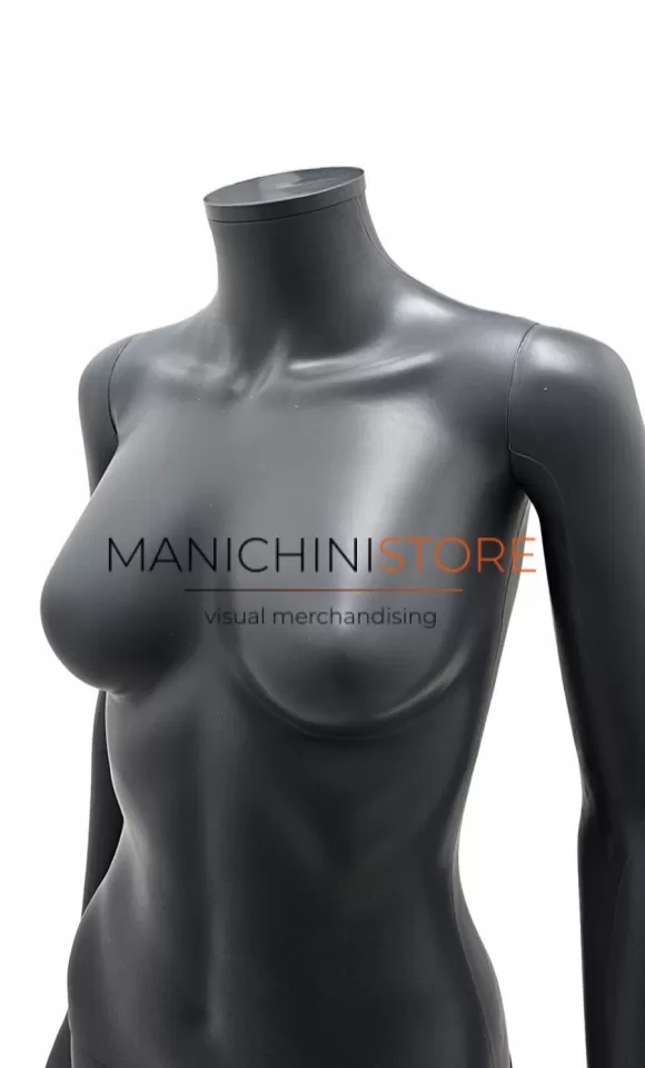 Bellissimo manichino donna realizzato interamente in plastica grigio antracite riciclabile al 100%.
