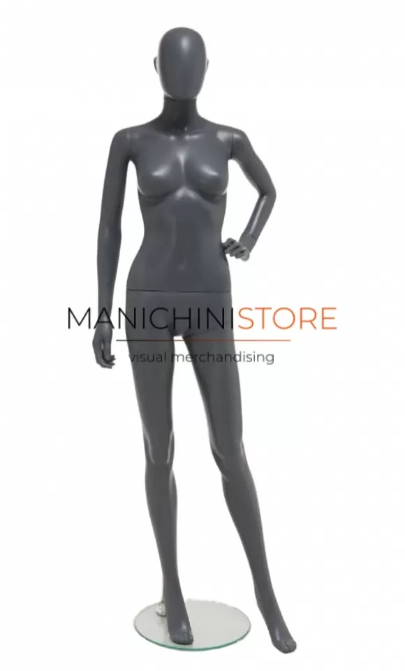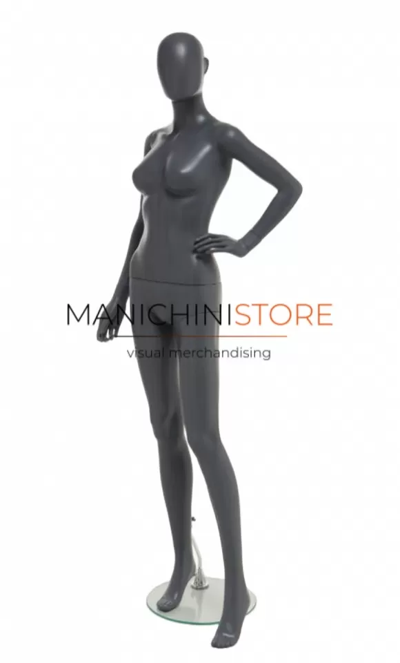 Bellissimo manichino donna realizzato interamente in plastica grigio antracite riciclabile al 100%.