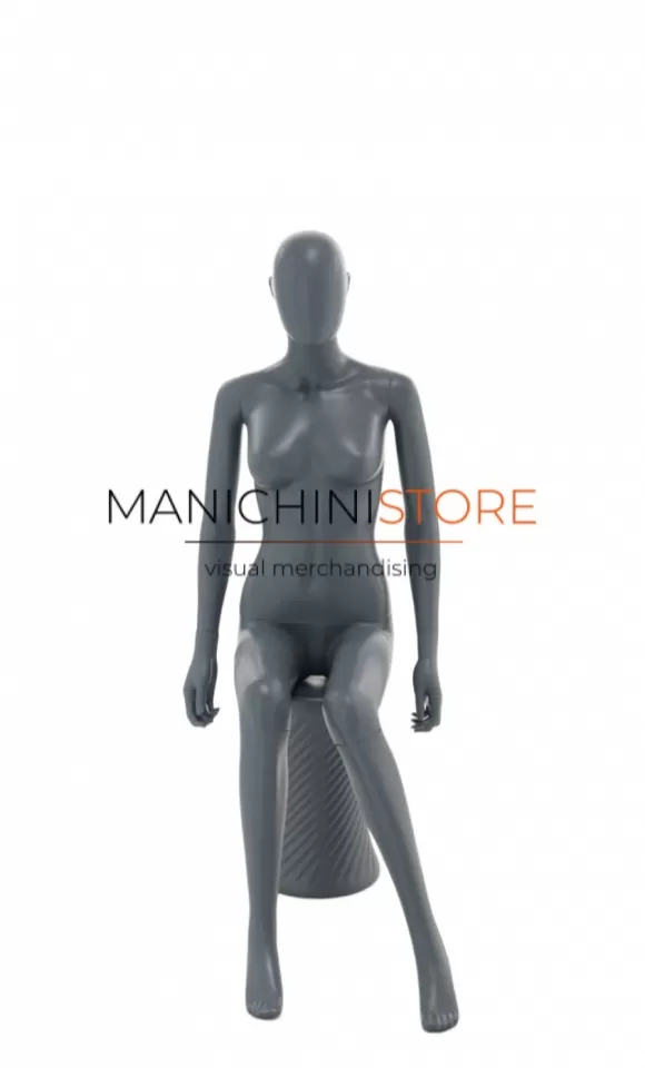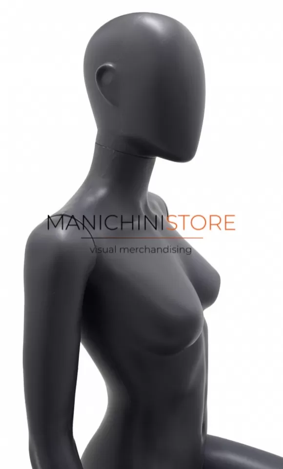 Bellissimo manichino donna realizzato interamente in plastica antracite riciclabile al 100%.