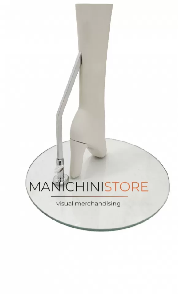 La cura dei dettagli e le linee sinuose ed affusolate caratterizzano questa collezione dai lineamenti appena accennati, accessoriata di una base tonda in vetro temperato del diametro di 38 cm con attacco al polpaccio per poter indossare qualunque tipo di calzatura, e di comodi tacchi removibili da 10 cm.